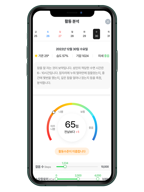 활동,수면,스트레스를 종합분석하여 건강상태를 알려주는 건강 지킴이